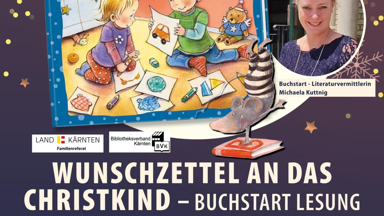 Gemeinsam mit der Buchstart-Literaturvermittlerin Michaela Kuttnig werden die Kinder das Buch „Wunschzettel für das Christkind“ entdecken. Im Anschluss gibt es eine kleine Jause und etwas zum Basteln.